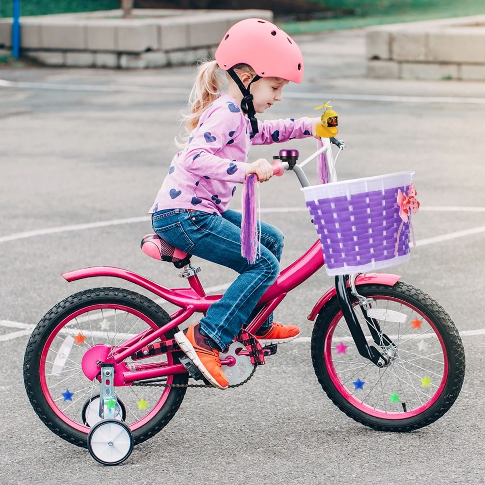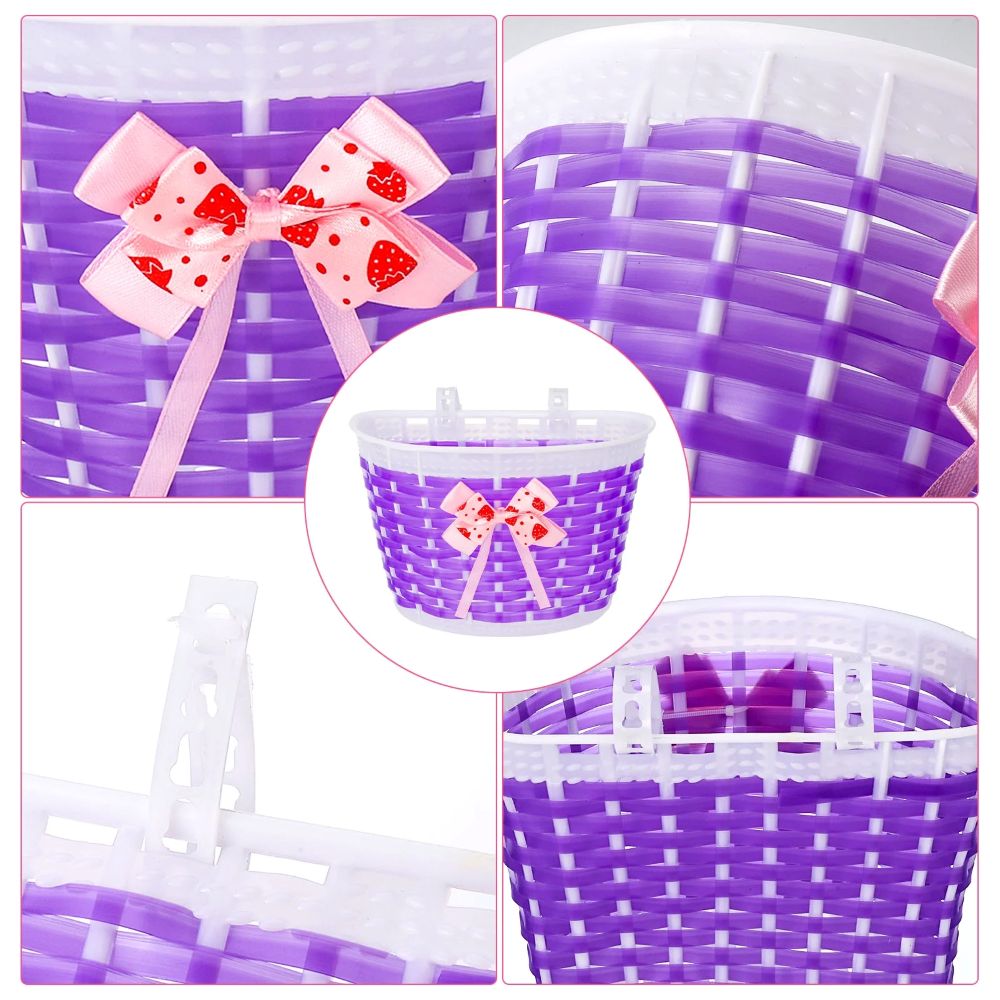 Girl’s bicycle decorations set comes with a beautifully woven, purple bike basket, adorned with a pretty ribbon bow. Now she can carry around her doll or essential belongings while pedaling around town.