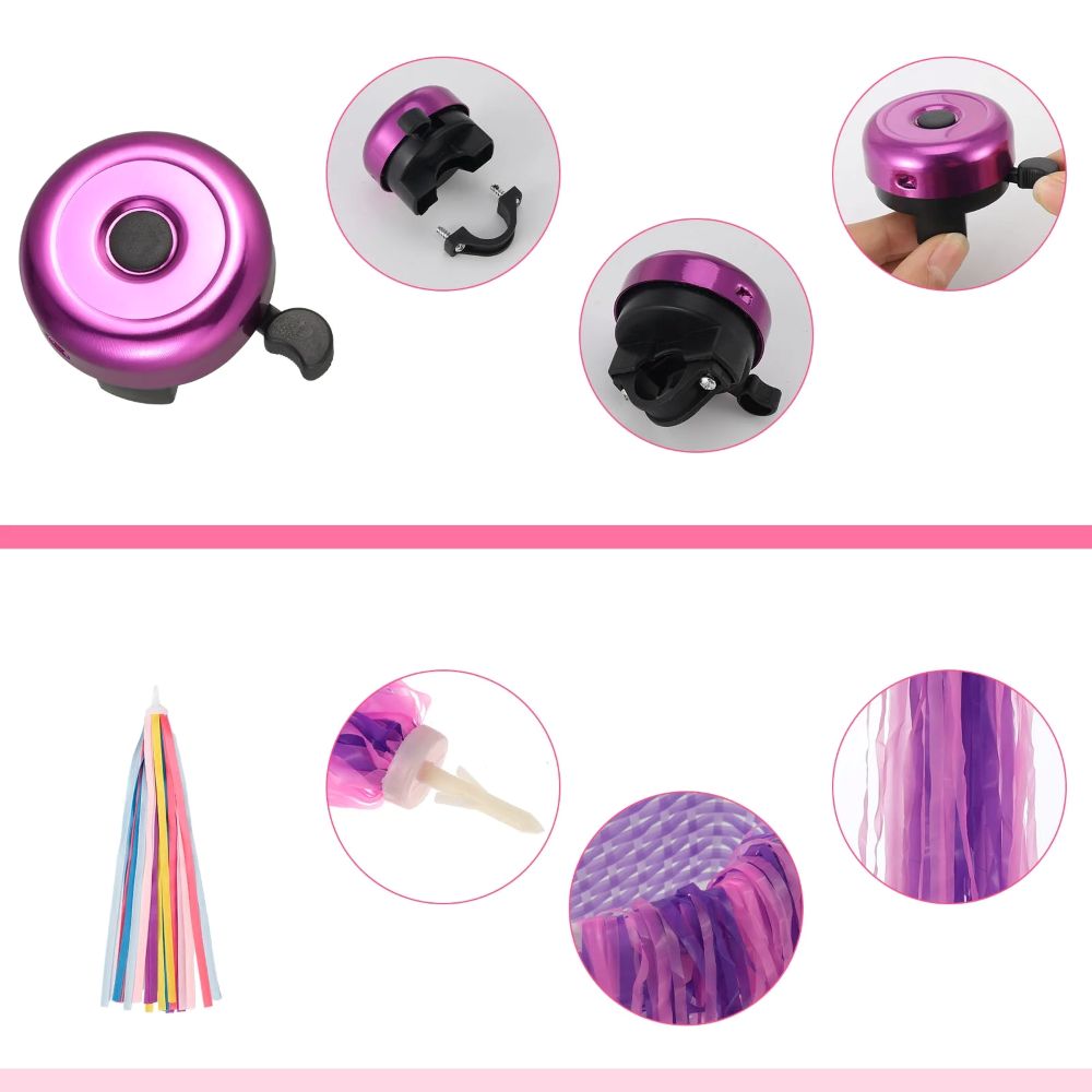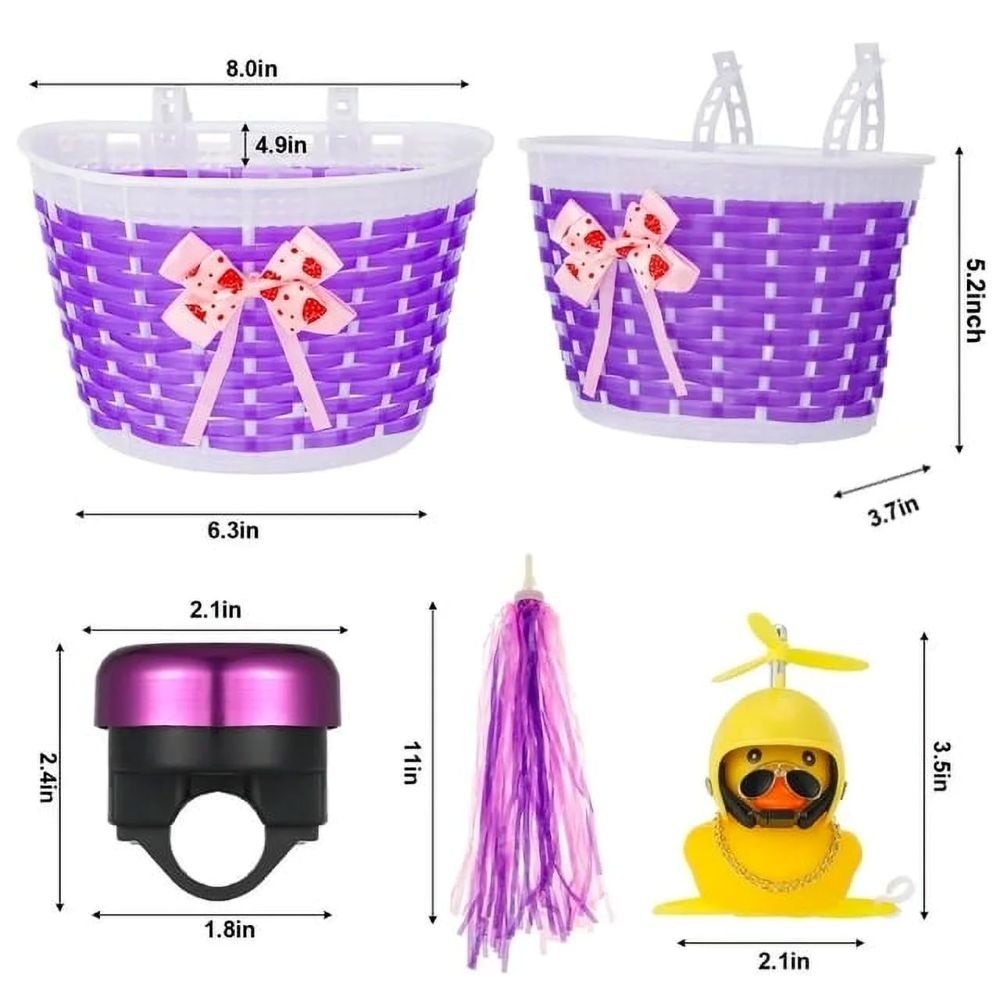Our bike basket set includes one purple bicycle basket, two streamers, one bike bell, one sounding duckling and a pack of star shaped beads, the complete decoration will give your bike a whole new look and surprise your kids!