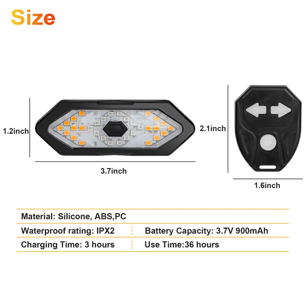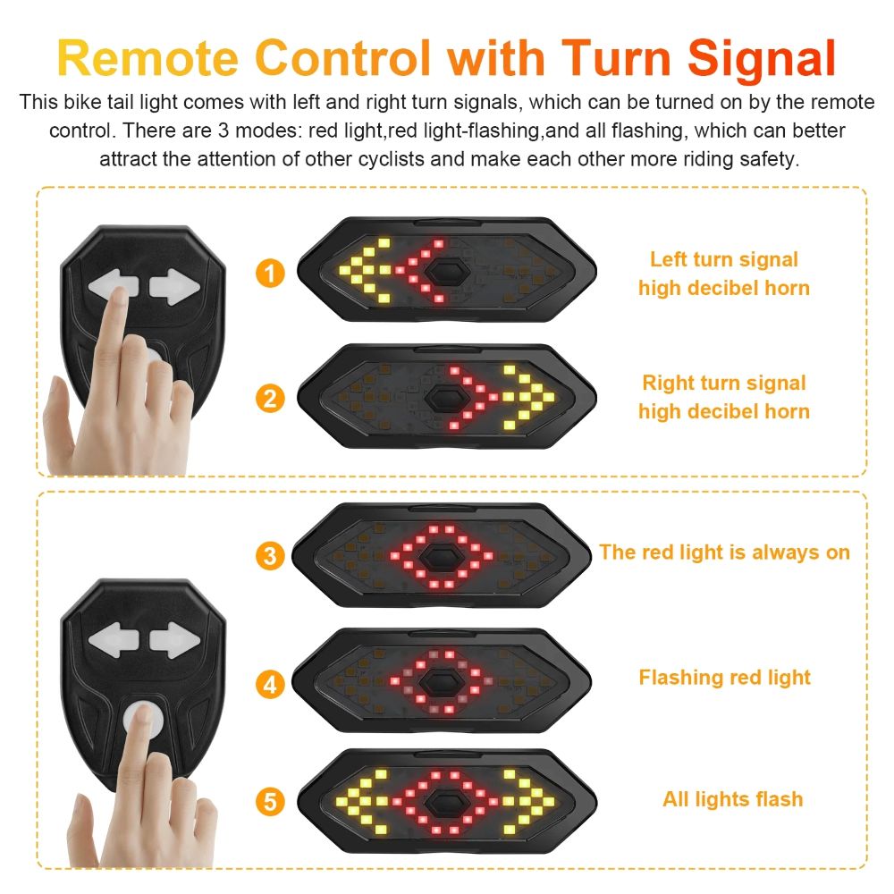 - Package Includes: 1 x USB Rechargeable Bicycle Light; 1 x Remote Control; 1 x USB Charging Cable; 1 x Rubber Strap; 2 x Sealing Ring; 1 x English Manual